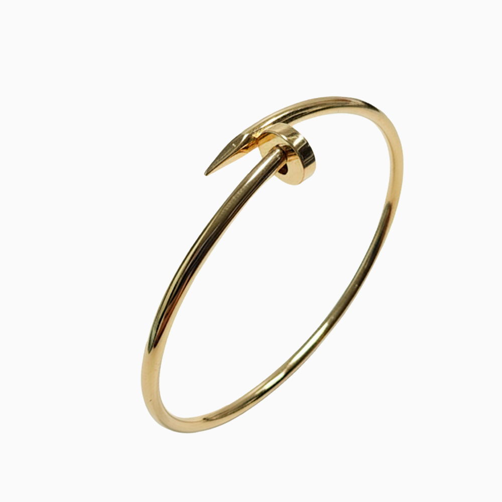 Esta pulsera de oro tipo clavo se distingue por su diseño moderno y minimalista, que combina fuerza y elegancia en una sola pieza. Su acabado pulido resalta un brillo impecable, ideal para quienes buscan un accesorio con carácter, sofisticación y estilo atemporal. Perfecta para lucir sola o acompañada de otras joyas, aportando siempre un toque de distinción.